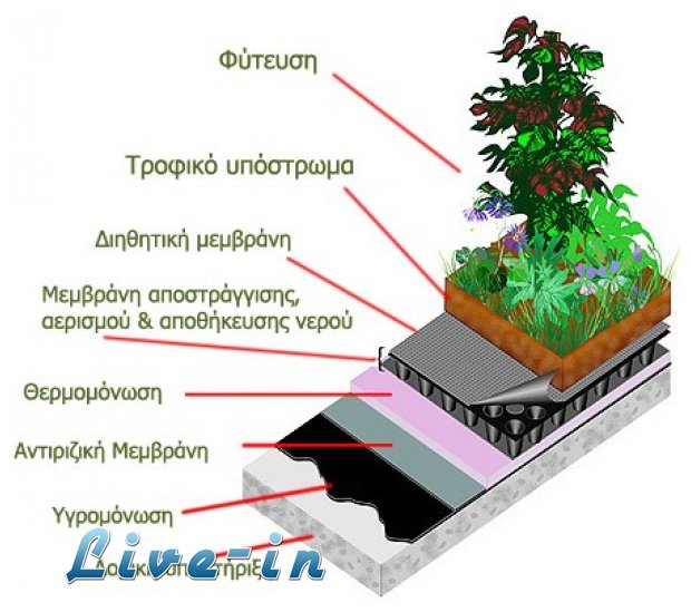 Η φÏτευση γÏρω αλλά και πάνω στο κτίριο είναι εξαιρετικÏŒ προστατευτική το καλοκαίρι γιατί το φυτά απορροφοÏν και καταναλÏŽνουν την ηλιακή ενÎργεια γιο τη φωτοσÏνθεση. Δε θερμαίνονται και δεν προκαλοÏν θερμικÎς ανακλάσεις, ÏŒπως π.χ. τα κεραμίδια. ΦÏτευση πάνω στο κτίριο μπορεί να γίνει με αναρριχÏŽμενα, ή με χÏŽμα και χÏŒρτο πάνω στα δÏŽματα και τις στÎγες. Η πυκνή φÏτευση μειÏŽνει δραστικÏŒ την εξωτερική θερμοκρασία το καλοκαίρι (ακÏŒμη και στους δρÏŒμους των πυκνοδομημÎνων κÎντρων των πÏŒλεων) και μονÏŽνει πολÏ αποτελεσματικά τα κτίρια και απÏŒ τη ζÎστη και απÏŒ το κρÏο.