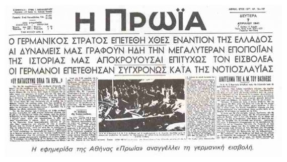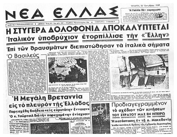 Δείτε Ï€ÏωτοσÎλιδα από εφημεÏίδες της εποχής του 1940.