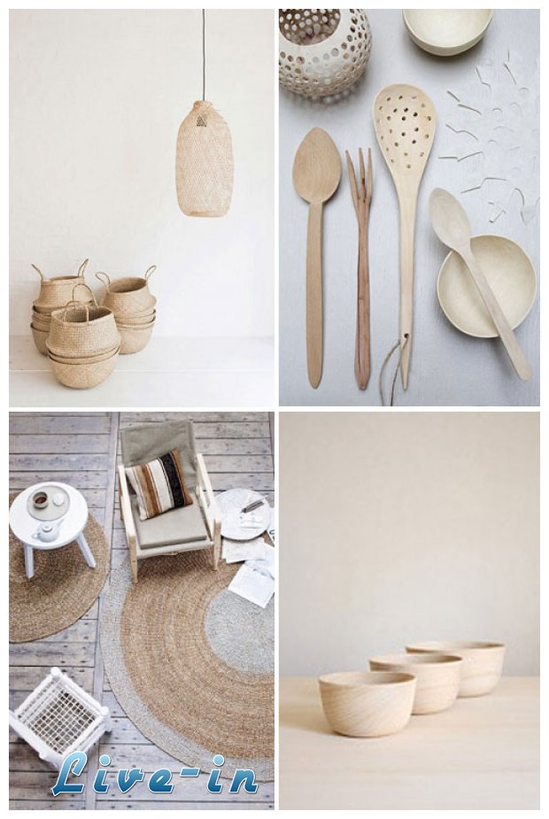 ΛευκÏŒ, ψάθα, ξÏλο, σε συνδυασμÏŒ με ουδÎτερους τÏŒνους και ίσως μικρά κομμάτια του γκρι. Για μÎνα ποτÎ αυτÏŒς ο συνδυασμÏŒς γίνεται βαρετÏŒς. ΑυτÏŒ το φυσικÏŒ στυλ είναι ιδιαίτερα τÎλειο το καλοκαίρι.