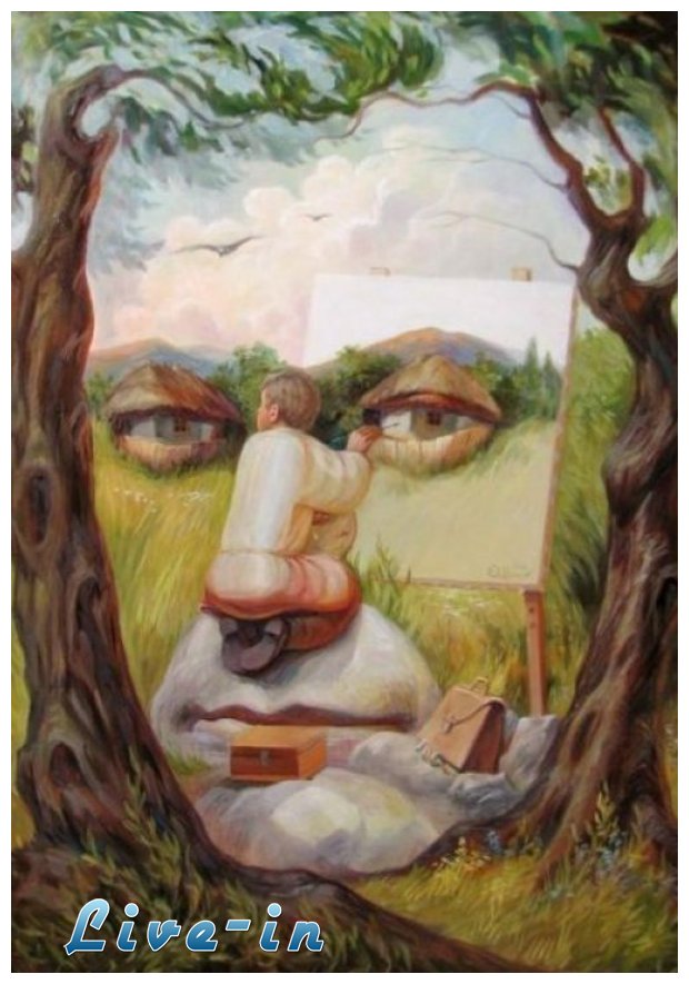 ΠροσÎξτε πÏŽς δÏο εικÏŒνες γίνονται μία. Ο Oleg ζωγραφίζει πίνακες που πραγματικά θα μποροÏσαμε να ποÏμε ÏŒτι είναι «δÏο σε Îνα», καθÏŽς πίσω απÏŒ τα αντικείμενα του εμφανίζονται πολÏ γνωστÎς φυσιογνωμίες, ÏŒπως αυτή του Δαρβίνου, του Βαν Γκογκ και του Σαίξπηρ.