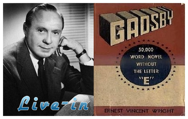 Δ. ΤÎλος, το 1937 ο ΑμερικανÏŒς Έρνεστ Βίνσεντ Ράιτ θα εκδÏŽσει Îνα μυθιστÏŒρημα με τίτλο «Γκάντσμπι» («Gadsby») δίχως να αναφÎρει πουθενά το γράμμα «e». To Γκάντσμπι αποτελείται απÏŒ 50.110 λÎξεις, 258 σελίδες, και ο Ράιτ το Îγραψε μÎσα σε 165 μÎρες. ΛÎγεται, μάλιστα ÏŒτι είχε αφαιρÎσει το γράμμα «e/Ε» απÏŒ τη γραφομηχανή του.