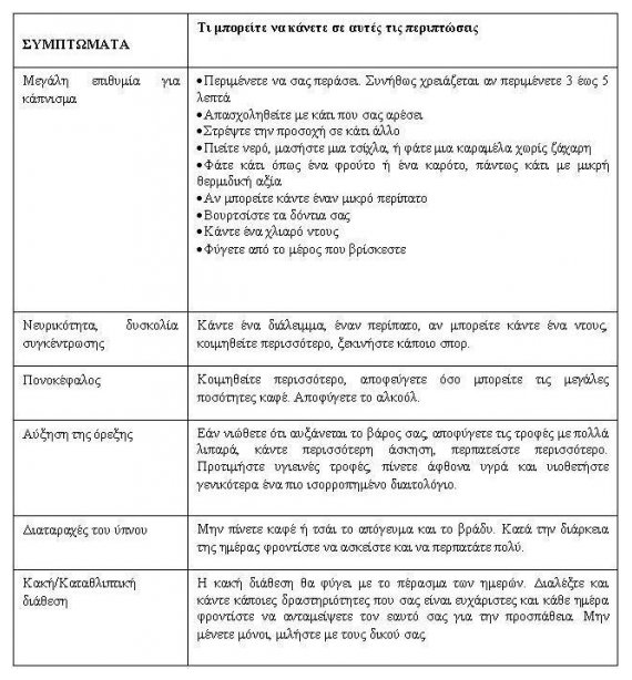 • Μετά το φαγητÏŒ σηκωθείτε αμÎσως απÏŒ το τραπÎζι. ΦÏγετε απÏŒ τη συνθήκη που σας κάνει να επιθυμείτε τσιγάρο.
