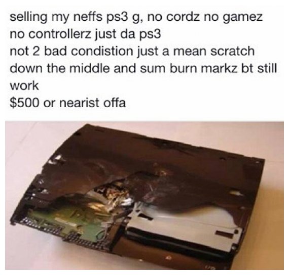 Έτσι, δημοσίευσε την αγγελία του σε... cool αγγλικά, λÎγοντας μάλιστα ÏŒτι η παιχνιδομηχανή δουλεÏει, αν εξαιρÎσει κανείς μια μεγάλη γρατζουνιά και ορισμÎνα... μικροκαψίματα στην επιφάνεια.