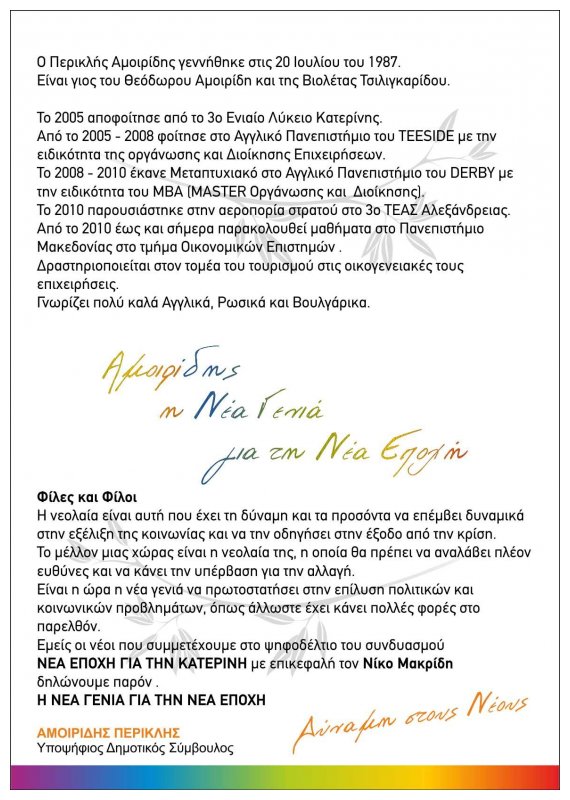 ΝΕΑ ΕΠΟΧΗ ΓΙΑ ΤΗΝ ΚΑΤΕΡΙΝΗ με επικεφαλή τον Νίκο Μακρίδη δηλÏŽνουμε παρÏŒν.