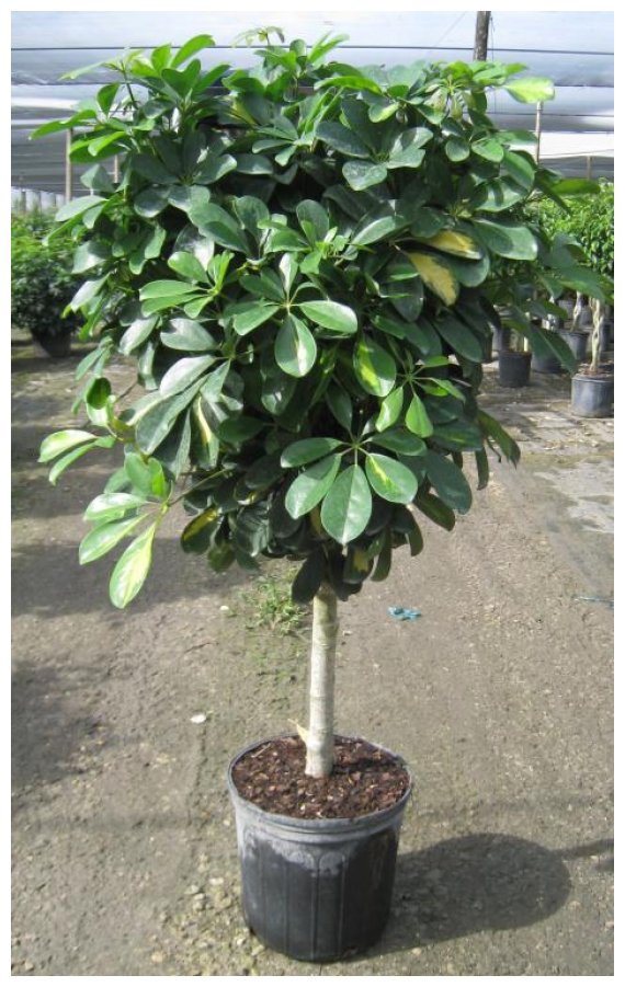 Έχει δενδροειδή ανάπτυξη και φτάνει σε πολÏ εντυπωσιακά μεγÎθη μετά απÏŒ μερικά χρÏŒνια φροντίδας. Η καλλωπιστική αξία του φυτοÏ οφείλεται στην ιδιαιτερÏŒτητα που Îχουν τα φÏλλα του, ÏŒπου διακλαδÏŽνονται κυκλικά σε πεντάδες, σαν τα δάχτυλα του χεριοÏ μας.